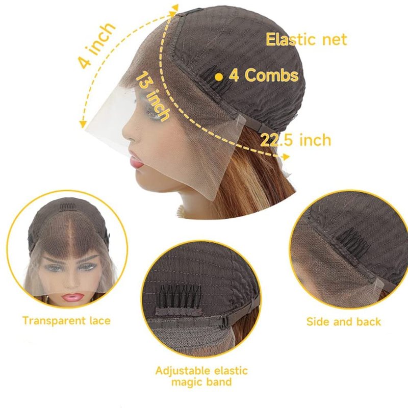 - Cap Size :13x4 HD Lace Front Wigs Cap(22-22.5 inch)With 4 Combs and Adjustable Straps Make It Fit Most People,Firm and snug.Wig elastic Bands Allows to Change the Tightness to Fit Your Head Circumference.