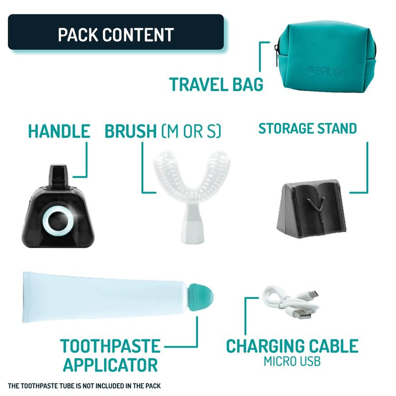 - PACK CONTENTS: This pack NylonBlack Premium contains 1 Handle Black Edition with Soft Touch finish with integrated battery, 1 Brush (Size M), 1 USB Cable, 1 Storage Bracket, 1 Toothpaste Applicator, 1 Travel Bag