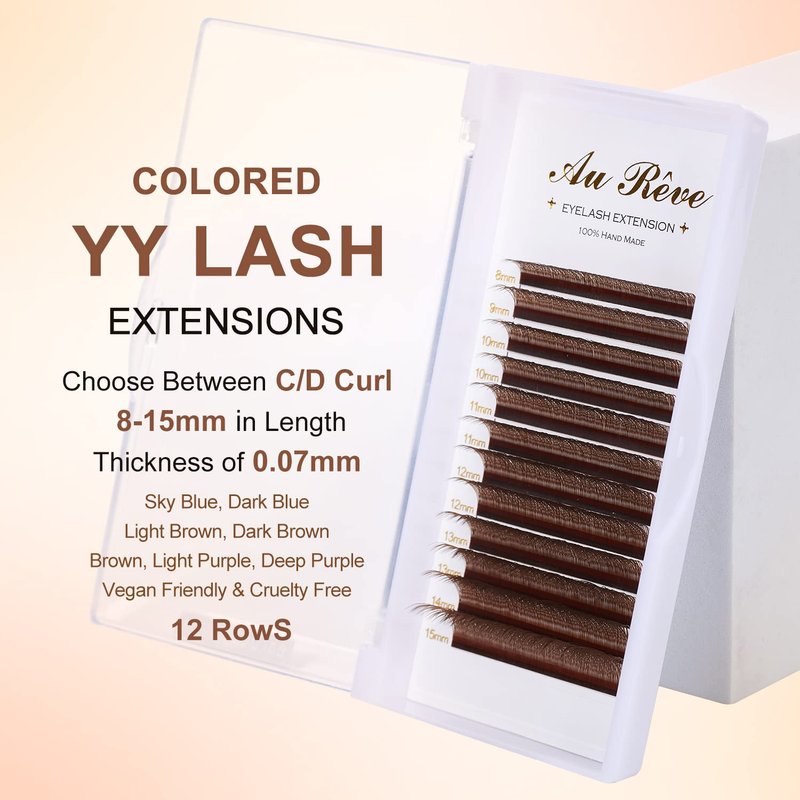- YY Colored Lashes: Curl: C/D, Mixed tray: 8-15mm, Thickness: 0.07. Six colors of y lashes to choose. YY lash extensions are a perfect way to enhance your look, make your eyes look charming and attractive.