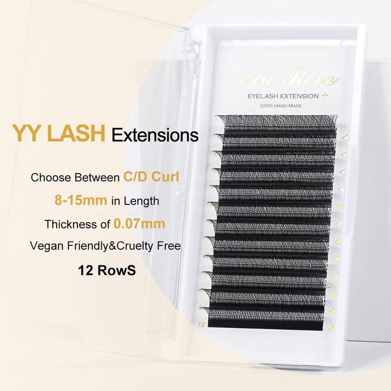 - 【Premade Fans Eyelash Extensions】: The YY lash extensions are made of the high quality black PBT silk material, light and soft. 0.07 thickness, C/D curl, mixed 8-15mm, single 10mm| 11mm| 12mm| 13mm| 14mm| 15mm. 12 rows per lashes tray.