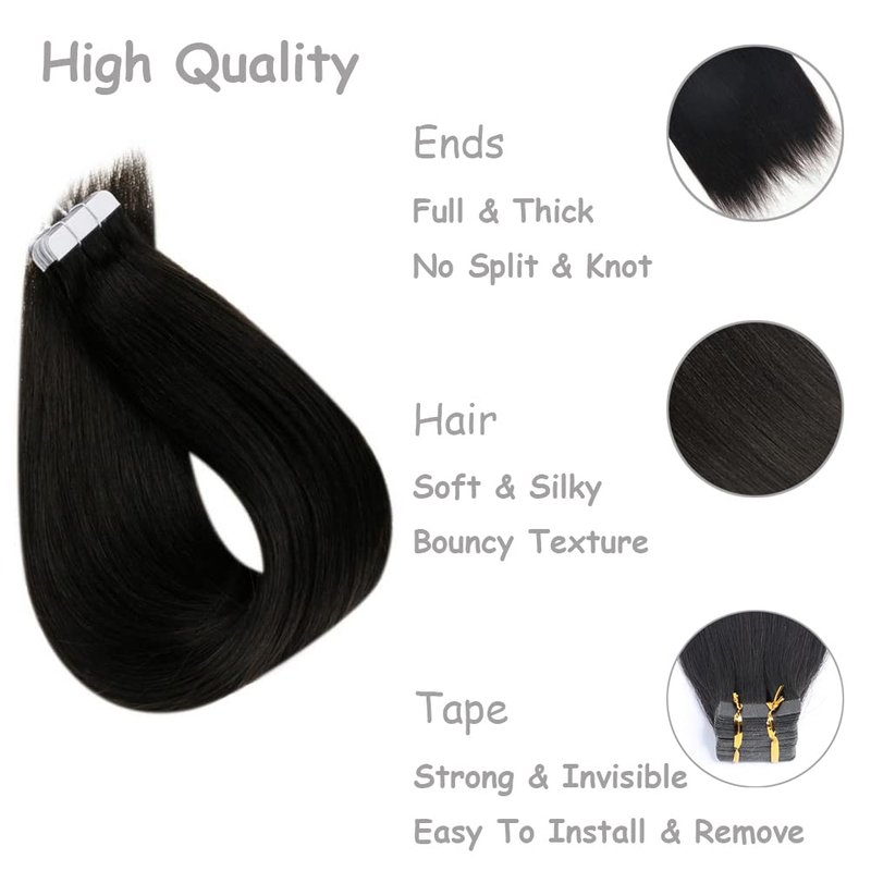 - 100% high quality tape in hair extensions human hair, the hair is soft and tangle-free, clean & bouncy, can be curled, straighted or styled as your own hair.