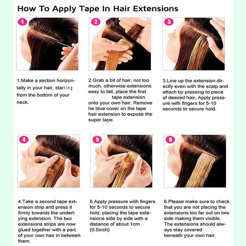 - Please understand that considering the different displayers and light environment, the pictures may have chromatic aberration with the real hair tape in extensions.