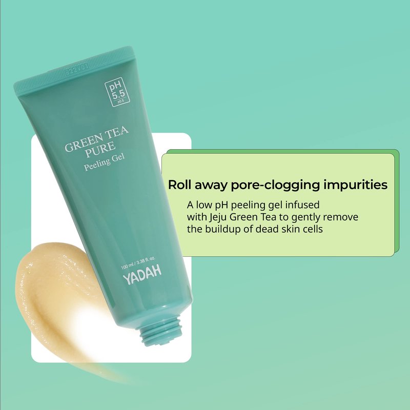 YADAH Green Tea Pure Peeling Gel, 3.4 Fl Oz - pH Balanced Exfoliating Gel with Natural Cellulose for Smooth, Resurface and Even Skin for Moisture Balance