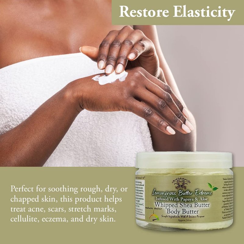 Yadain Lemongrass Extreme Body Butter | Whipped Shea Butter for Face and Body Moisturizing Natural Body Butter for Skin Detox, Cruelty-Free, 12oz