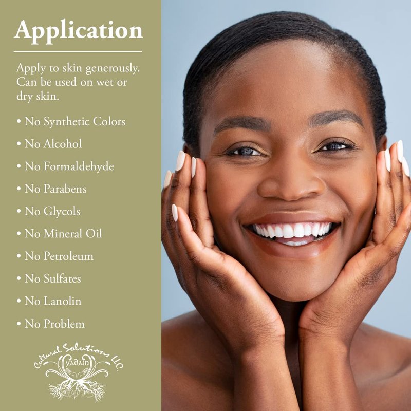 - USAGE AND APPLICATION: Melt a pea-size amount of Shea Butter between your hands and massage on the skin until absorbed. Apply to skin generously. Can be used on wet or dry skin.