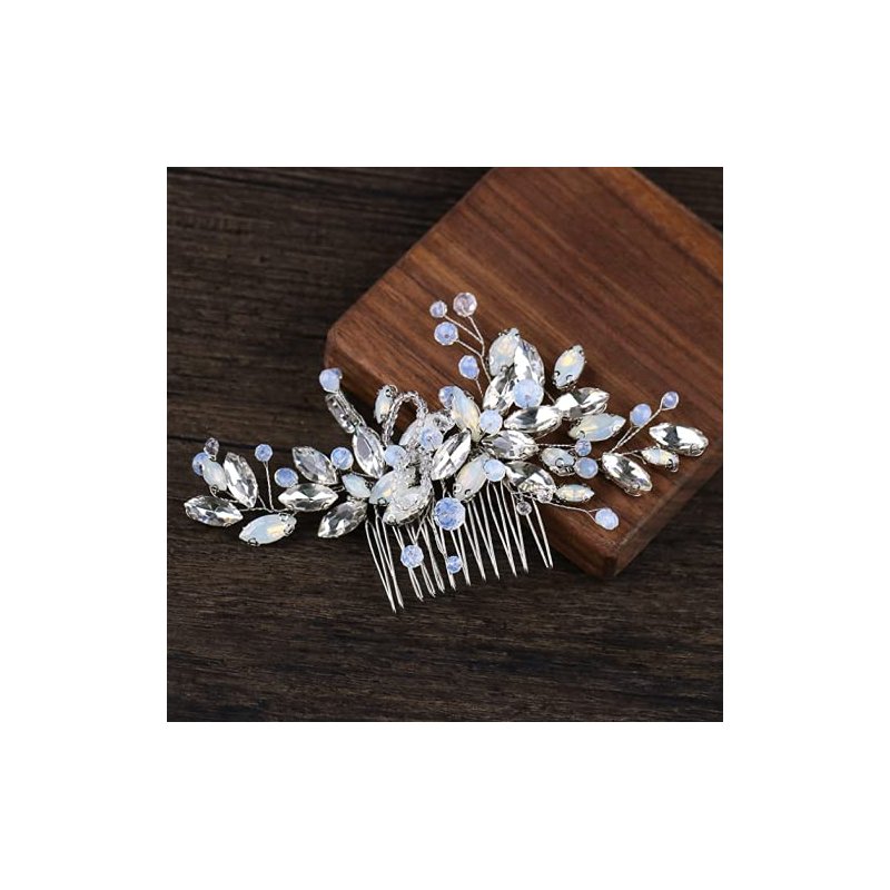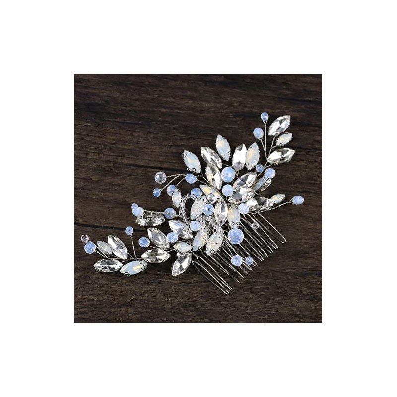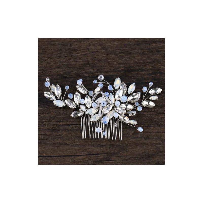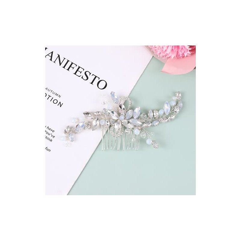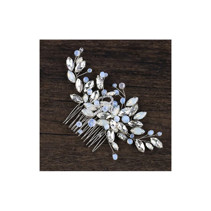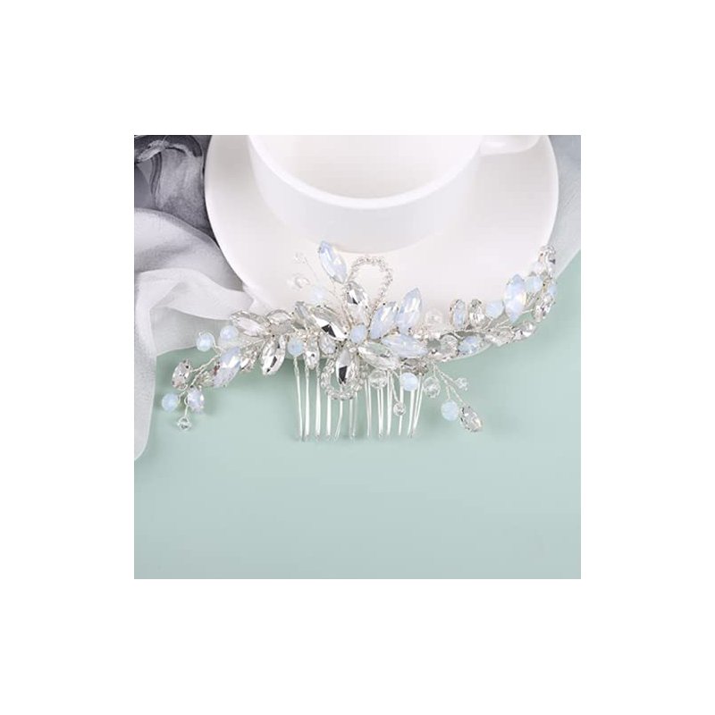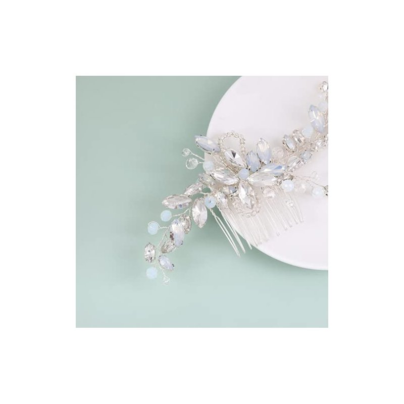 YADIRF Wedding Hair Comb Silver Blue Rhinestones Opal Crystal Vintage Bridal Clips Hairpiece Headband Accessories For Birthday Party Prom Halloween