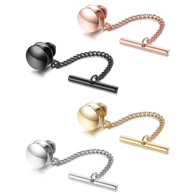 - 【Package Contains】One Package Contains 4 Pcs Mens Tie Tack Clip with Chain in 4 Colors,Black,Silver-tone,Gold-tone,Rose Gold-tone.Classic Design,High Quality Material Assurance,Deserve to Purchase.