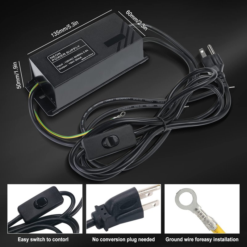 YaeCCC 10KV 30mA Power Supply for Glass Neon Sign Electronic Neon Light Transformer 120V AC 50Hz/60Hz