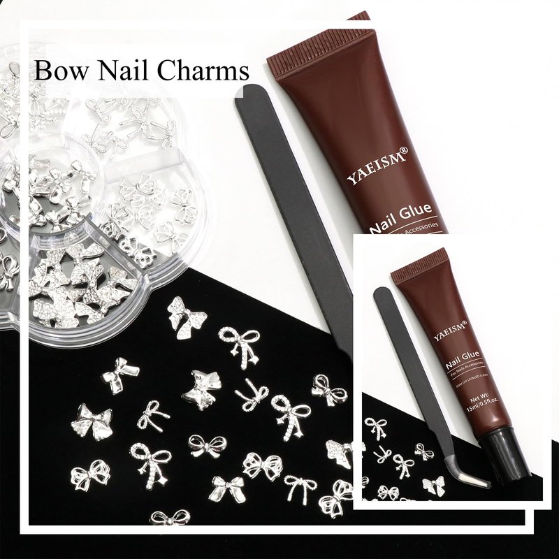 - Complete Set - These bow charms for nails are a complete combination installation, This set comes with a tube of 15ml gel glue(UV/LED Needed), a pc of tweezer and a pc of pickup pencil,you can easily complete the nail art at home