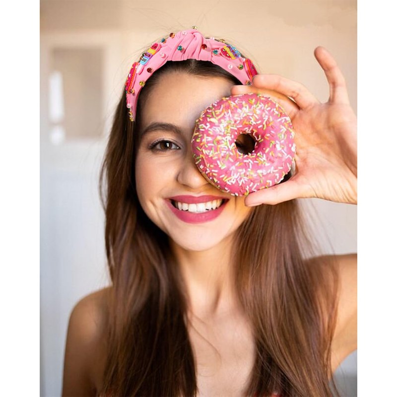 - 【Summer Beach Accessories Outfits】: Let your style shine with this delightful beach headband that celebrates the joy of summer treats and sunny days! Perfect for beach, Hawaiian vacation, barbecues, travel, wedding, birthday, celebration, mother's day, theme party, prom, cookouts, cocktail and more. These jeweled crystal headband capture what's so magical about summertime, I bet you, too, are excited to get outside and frolic in the sun and spend some quality time with family and friends with our sweet donut knotted headband!!