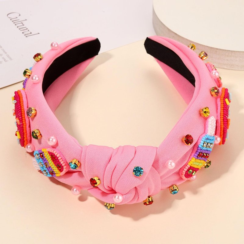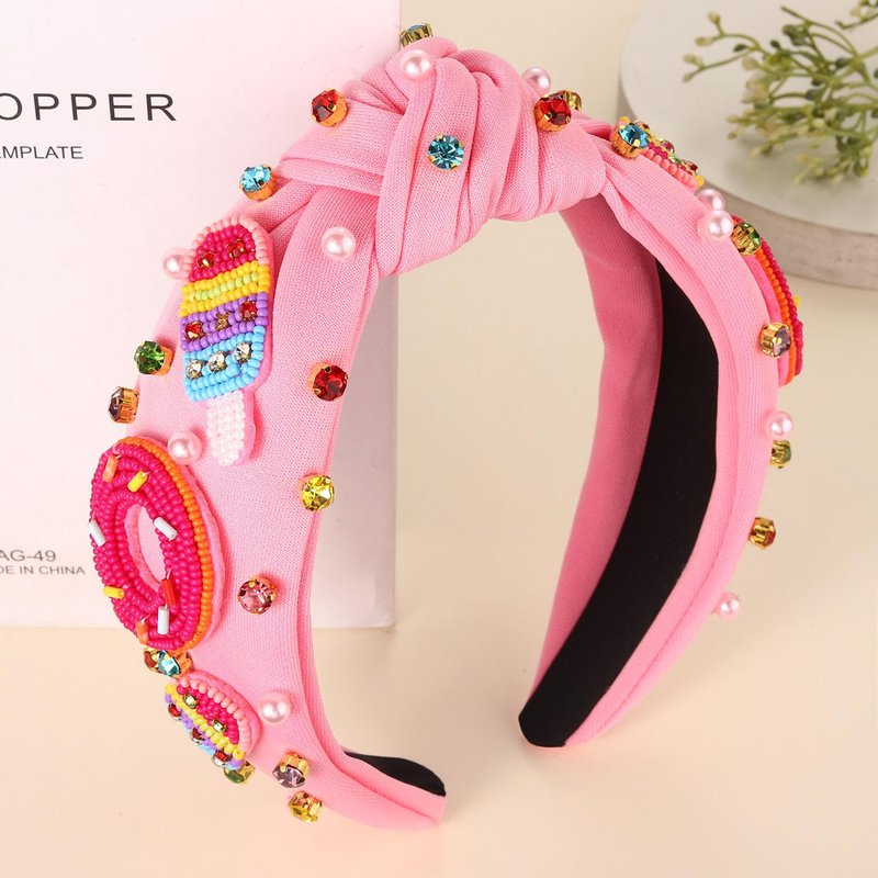 YAHPERN Ice Cream Headbands Summer Headband for Women Colorful Beaded Sweet Donut Headband Embellished Rhinestone Crystal Knotted Headband Summer Beach Accessories Holiday Party Gifts