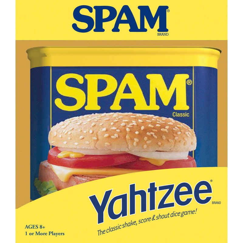 - Sizzle up some heated competition with this collectible Yahtzee dice game featuring the iconic SPAM Brand