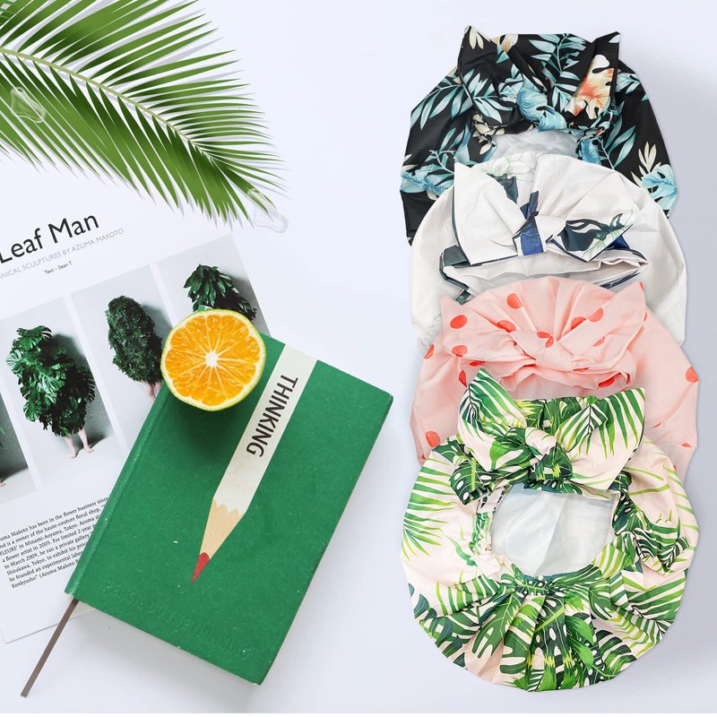 YAJCAJO Shower Cap, Cotton Lining, Keeps Hair Dry, 4 Pieces Waterproof Shower Cap, Reusable Bath Shower Caps for Women Long Hair