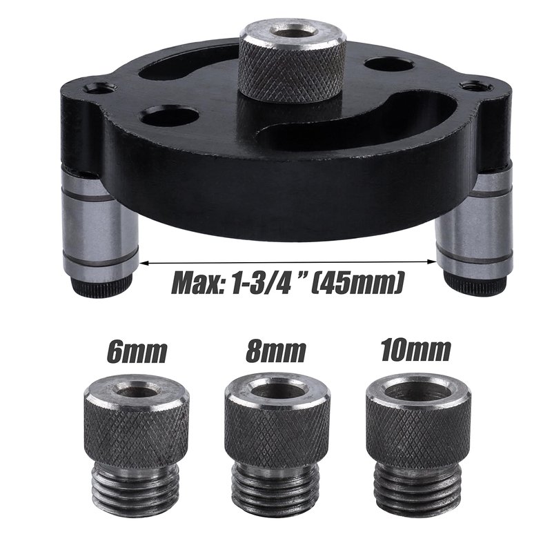 - Self Centering Doweling Jig Type: Straight Hole, Maximum Support Plate Thickness: 1-3/4 Inch (45mm), Drill Guide Diameter: 6mm, 8mm, 10mm