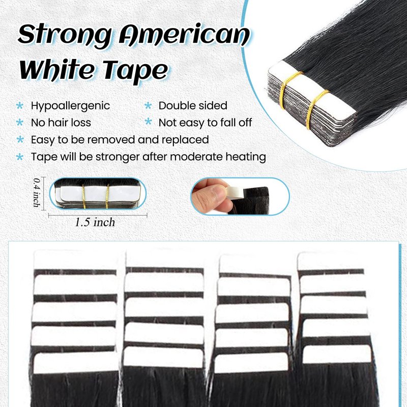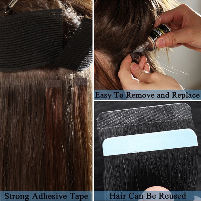 - 【Prevent Tape ins Hair Extensions from Falling Off】Tape in hair extensions human hair must be applied to washed clean hair, and can't use conditioner or essential oil before installation. Don't wash your hair within 48 hours after installed, and don’t put conditioner on the roots of your own hair, includes anything has oil, that could make tape hair extensions slip out. If tapes become not sticky due to long-term storage, please tell us and we will send you new tapes to replace.