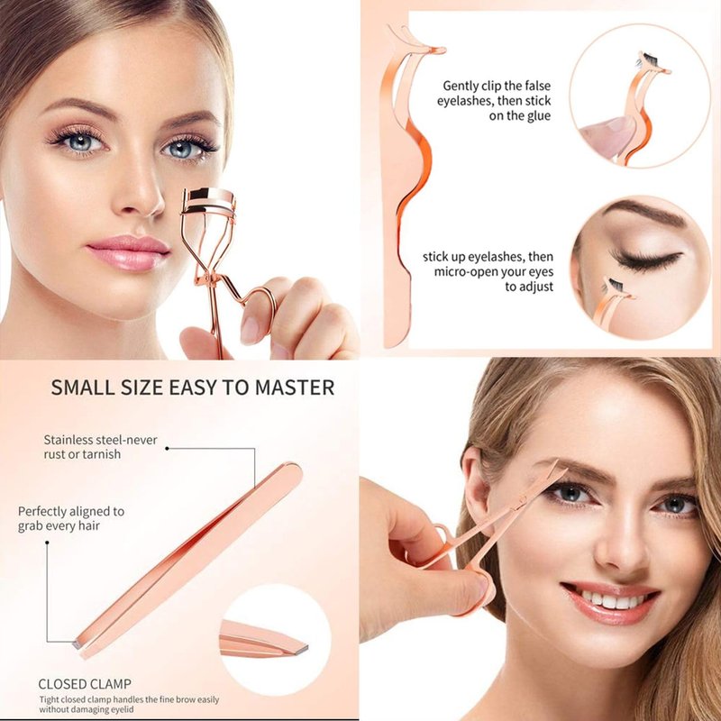 - Multi-function: Eyelashes tools made of high quality stainless steel, rose golden color, can help you put on or take off false eyelashes quickly, trim eyebrows and curlers eyebrows to make you more beautiful.