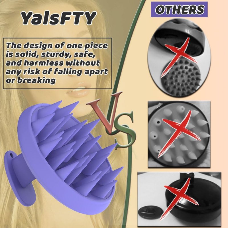 - The YalsFTY scalp massager, meticulously crafted from a single piece of luxuriously soft food-grade silicone, magnifies hair regrowth and fosters heightened hair density through delicately stimulating the cells within the hair follicles.