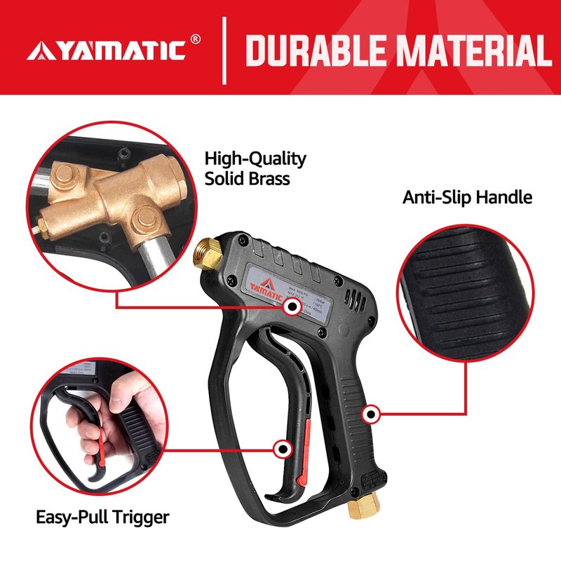 YAMATIC Short Pressure Washer Gun with Swivel, 5000 PSI Power Washer Wand Stubby Trigger Handle with 3/8" Plug & M22-14mm Male Inlet, 1/4" Quick Connect Outlet for Foam Cannon Car Wash