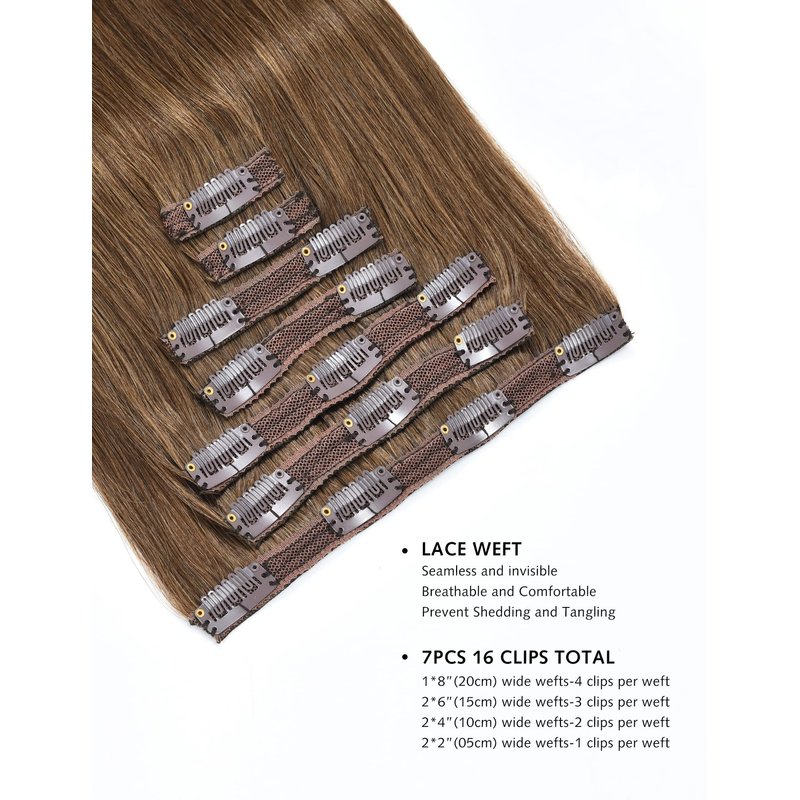 - 【INVISIBLE & WELL BLEND】--We know you don't want people to know your secret. Our clip on hair extensions use similar hair color clips to ensure invisibility. The hair is natural, they’ll blend well with your own hair. Perfect for adding your hair volume and length, instantly change your look without any damage. If you have a thick hair and want to add your hair length, please buy 2 sets.