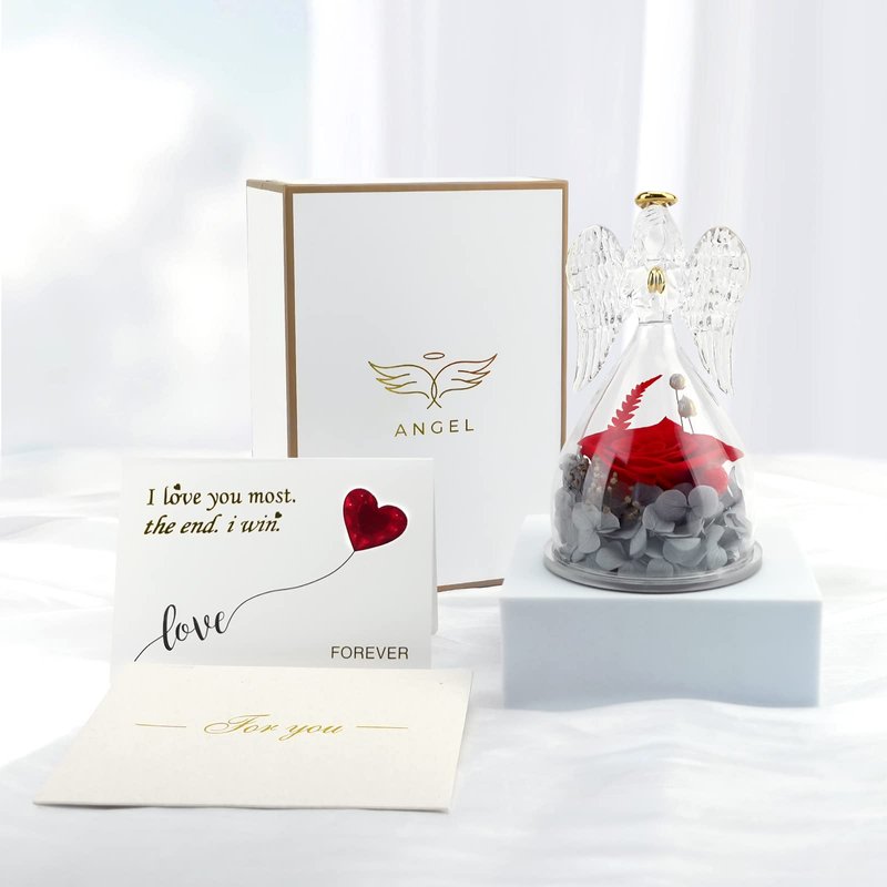 - Our angel figure forever real rose is made with unique preservation process, which can last 3-5 year, you just need to put the angel rose gift in a cool place, no need watering and sunlight.