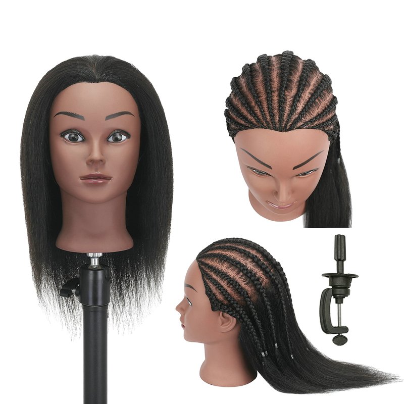 YANGANG Real 100% Human Hair Mannequin Head Hairdresser Practice Training Manikin Cosmetology Doll Head with Stand Clamp Holder