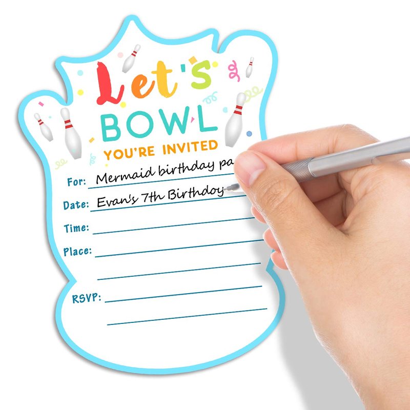 Yangmics Direct 30 Bowling Birthday Party Invitations with Envelopes-Double Sided -Shaped Fill-in Invitations