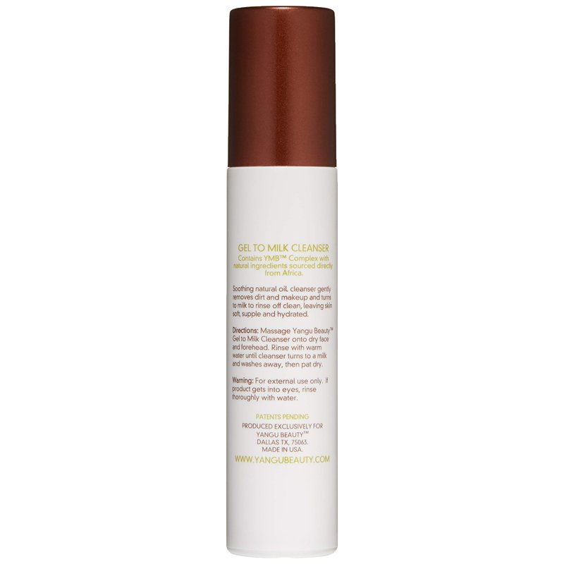 Yangu Beauty Gel to Milk Cleanser contains YMB Complex with natural ingredients sourced directly from Africa. This Gel to milk Cleanser is a soothing natural oil cleanser that gently removes dirt and makeup and turns to milk to rinse off clean, leaving skin soft, supple and hydrated. For dry and mature skin. Infused Yangu Nut oil and with African Kalahari Melon Seed Oil known for balancing moisture and sebum, to help minimize the appearance of pores. Gentle, non-stripping formula is safe for even sensitive skin.
