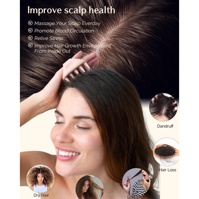- 【IDEAL GIFT】You will get a high quality scalp brush, a satin hair scrunchies and a beautiful box. The soft, high-quality anti-dandruff brush provides you with a pleasant washing experience. Now start enjoying your hair salon!