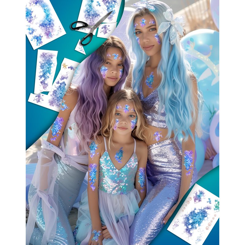 - Mermaid Accessories for Girls: These mermaid tattoos double as mermaid accessories for girls, adding a splash of color to party. They're also great as mermaid stickers for girls, making them a versatile addition to your little mermaid decorations.