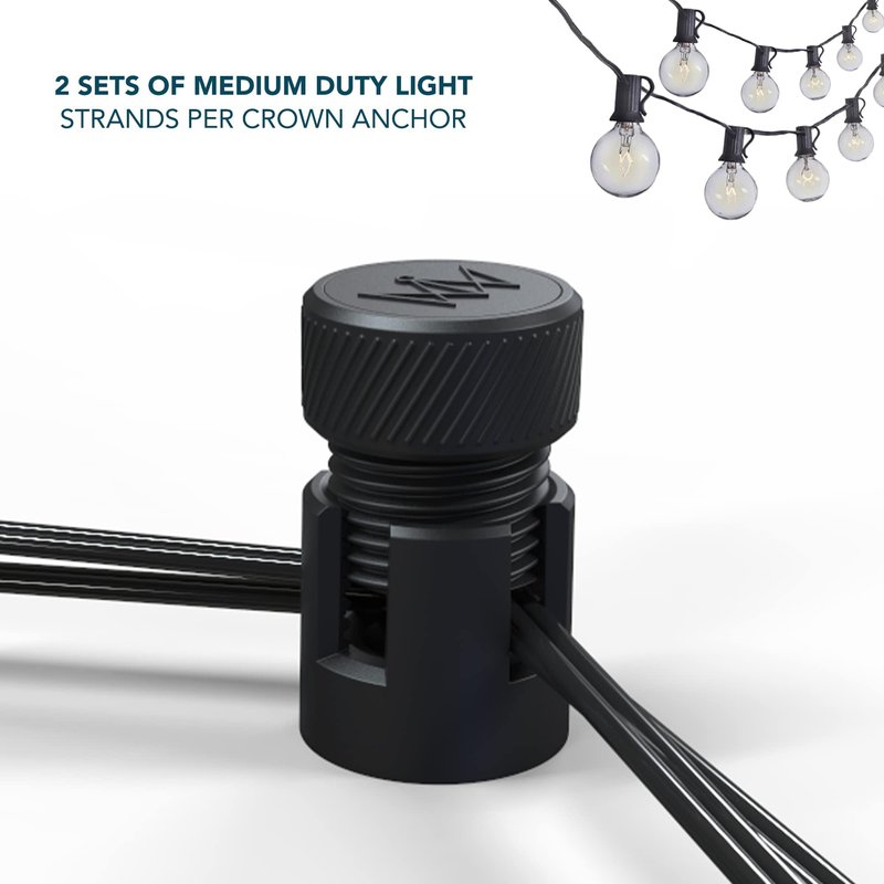 YARDHAUS Crown Elite Mini Hanging Anchors are The Simple, Secure and Stylish Solution for All Your String Light Installation Projects. A Single Pack of 4 can Hang up to 60' of String Lights.