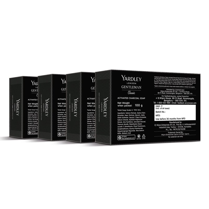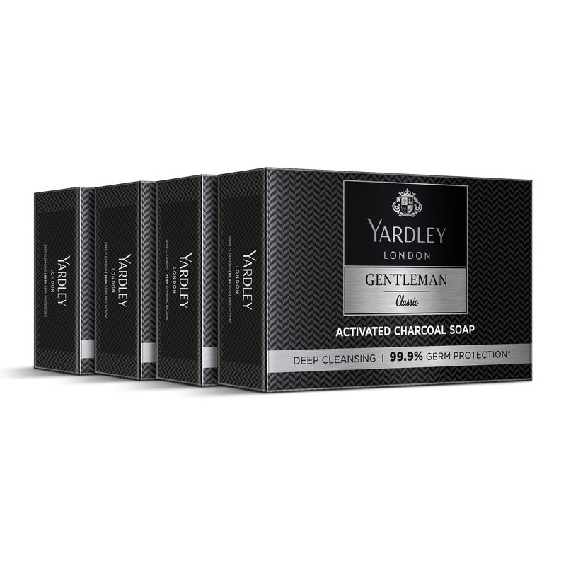 Yardley London Gentleman Classic Activated Charcoal Soap, with 99.9% Germ Protection and Deep Cleansing of Skin - Pack Of 4 (100 g each)