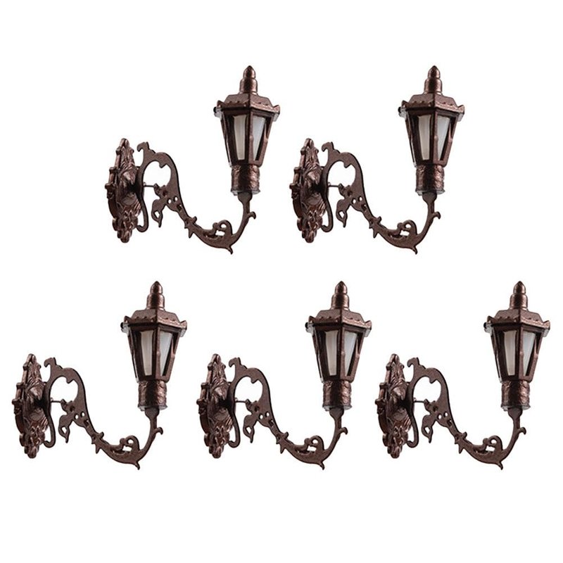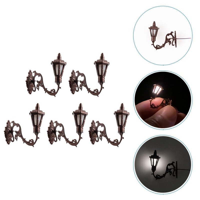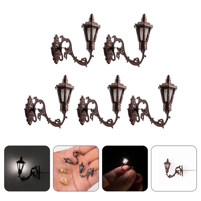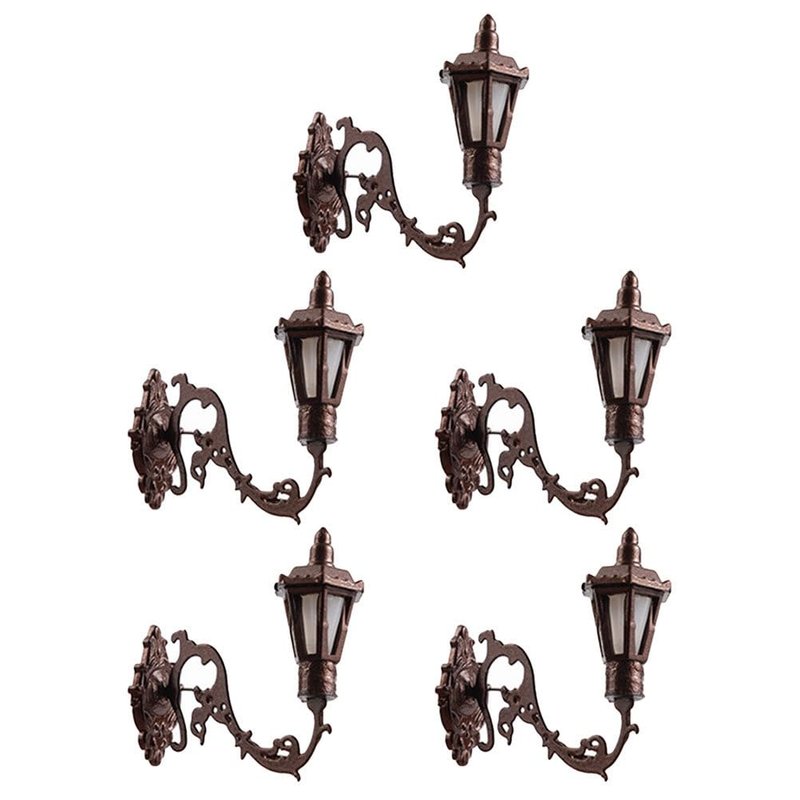 Yardwe 5pcs Miniature Wall Sconce Lamp Dollhouse Garden Light 1: 12 Scale Mini Wall Lamp Simulation Lamp Models Diy Sand Table Sconce for Dollhouse Micro Landscape Decorations, Bronze