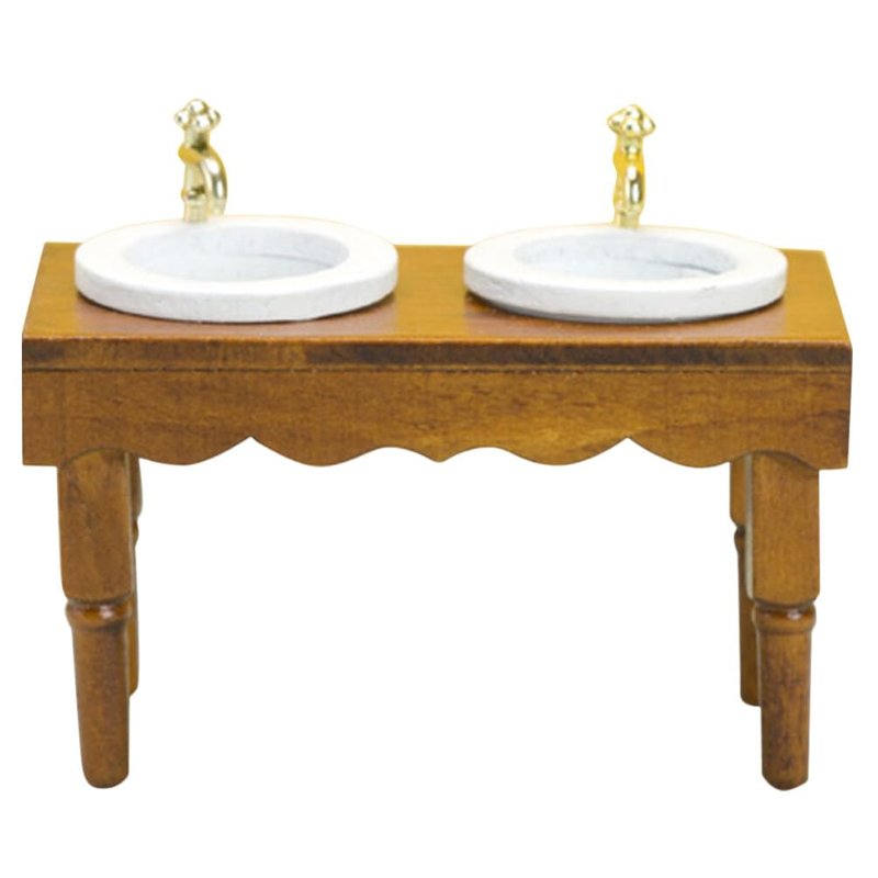 - Miniature Wooden Wash Basin Doll House Cabinet The Wash Basin Cabinet Model Is Made of Wood Materials, Our Model Is Very Strong, Practical and to Use.Smooth Surface, Simple and Vivid Look, Our Miniature Bathroom Cabinet Is a Nice Mini House Adornment