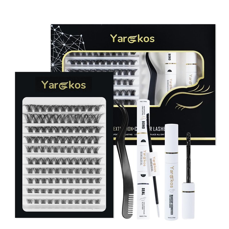 Yargkos Lash Extension Kit, 110Pcs 8-16mm D Mix Curl False Lashes Clusters, Bond and Seal Glue, Makeup Remover, Tweezers, Individual Eyelash Extensions Set, Natural Look DIY at Home, Black-A2