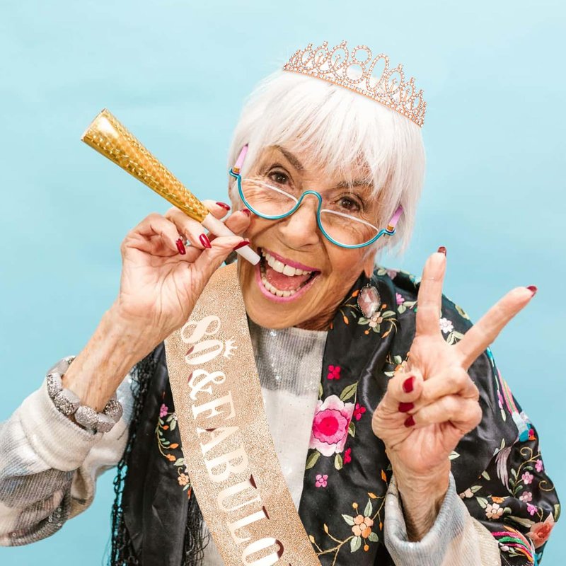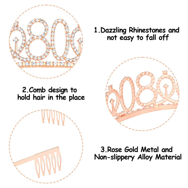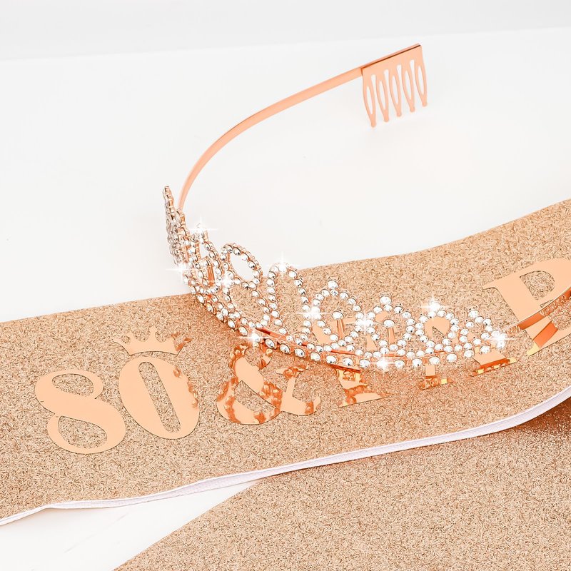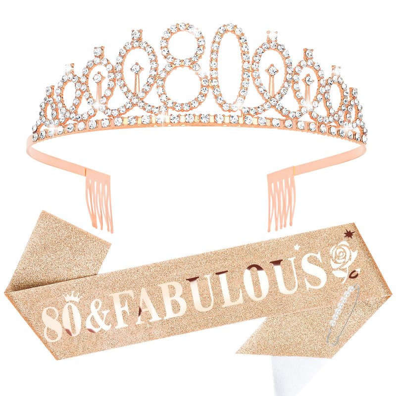 - Perfect for Birthday Party Set: "80 & Fabulous" rose gold satin sash and a rose gold rhinestone crown with a beautiful pearl pin. When worn, the Queen's temperament is immediately apparent and the crowd will be dazzled.
