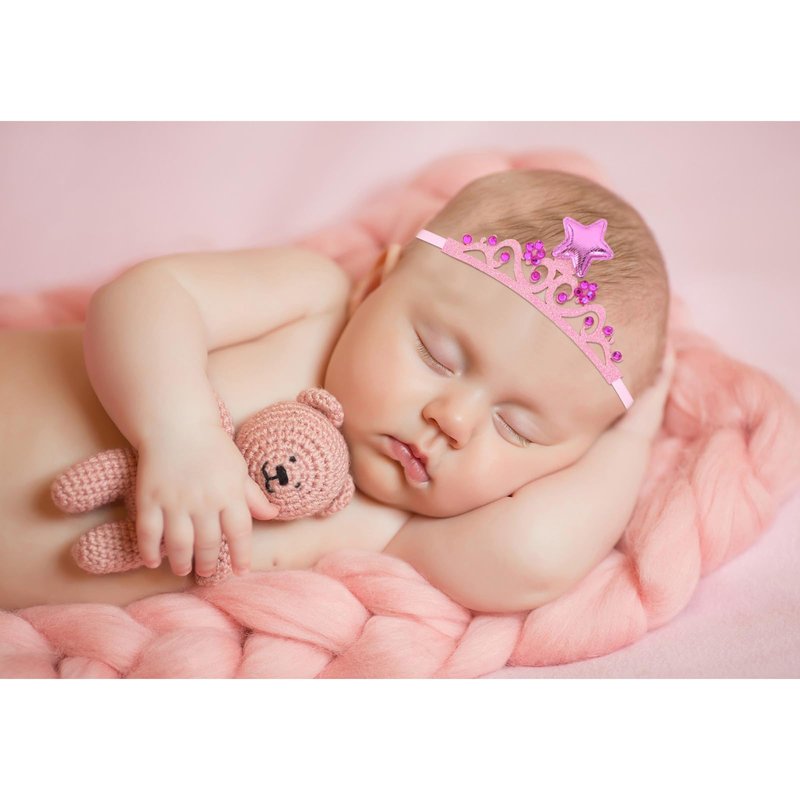 - Baby Tiara Design: This exquisite hairband showcases a delicate design with cotton lace weaving, adorned with petals, stars, and diamonds. It features a lovely band, adding to its fashion appeal.