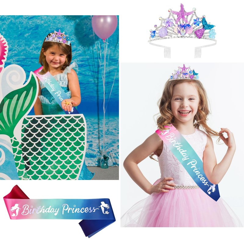 - Mermaid Crown: Exude glamour and charm with this mermaid tiara and sparkling sash! This mermaid tiara is a universal size, all adults and children can wear this beautiful mermaid tiara at the party, enjoy the party!