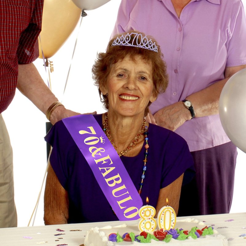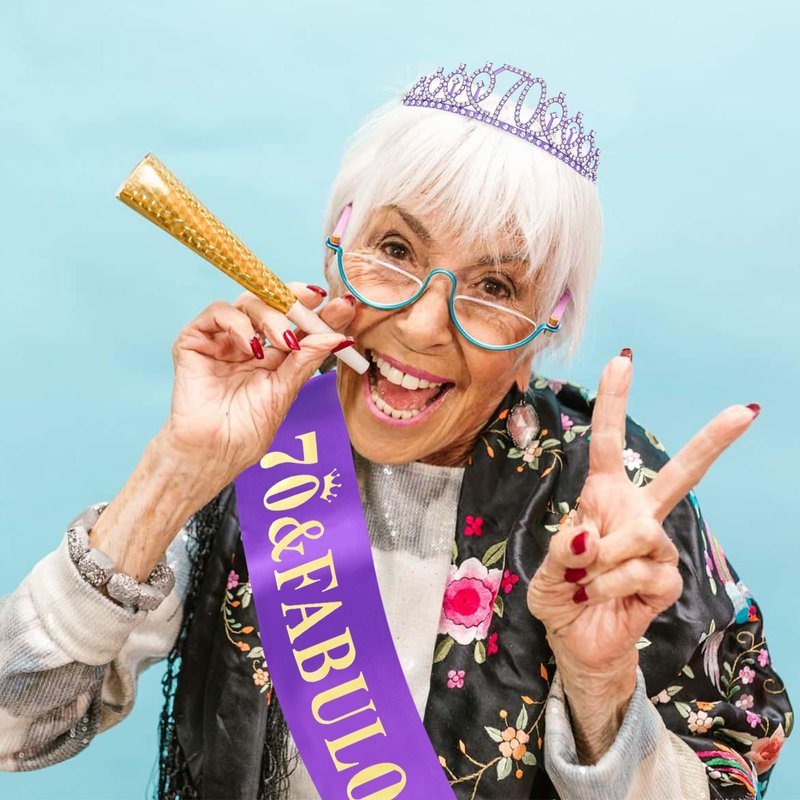 - 70th Birthday Sash: The birthday sash is made of soft, glittery fabric with hot foil stamping to match any outfit.