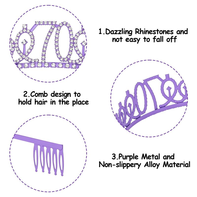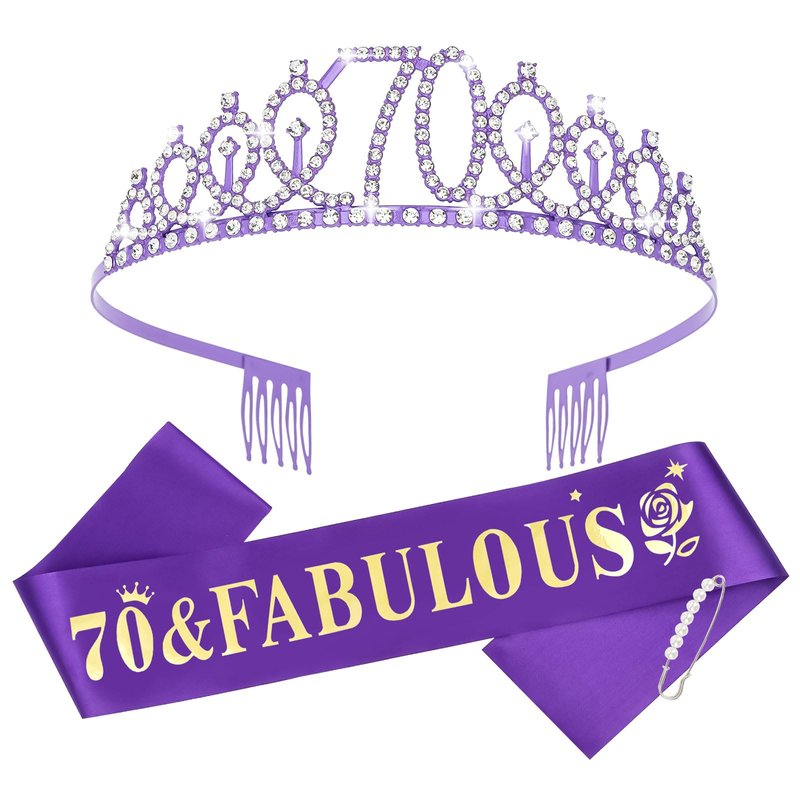 YARIEW Purple Crown + 70 & Fabulous Birthday Sash + Pearl Pin Set, 70th Birthday Decorations, 70th Birthday Gifts for Women, 70th Birthday Party Favor