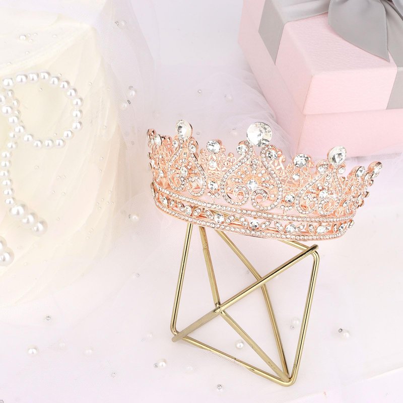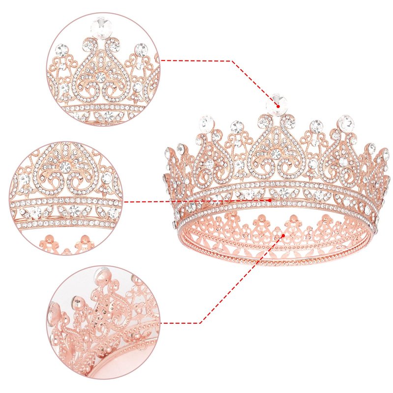 YARIEW Small Rose Gold Crystal Crown for Little Girls Flower Bouquets Accessories Rhinestones Wedding Cake Topper Birthday Crown for Kids Cake Decorations