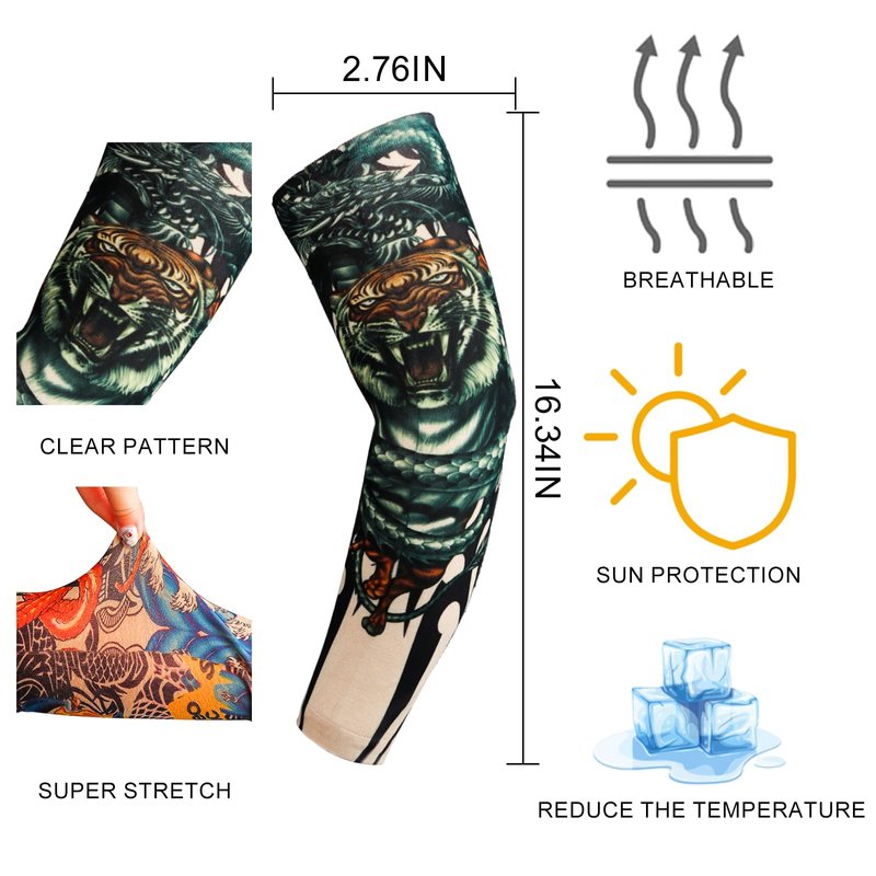 - Looks Real and Seamless -- 92% nylon and 8% spandex,stretchable fabric material,These arm tattoo sleeves is easy slip on and off,you can feel comfortable and soft whenever you wear it. Reasonable price with great quality.