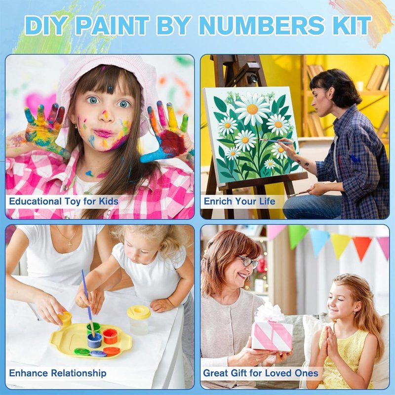 - BIGGER PROFESSIONAL CANVAS AND HIGH QUALITY BRUSHES - The digital oil paintings use bigger HD canvases with vibrant colours, which makes it easier to distinguish the digital areas, so that your child's eyes won't be easily fatigued from painting for a long time. Please don't worry. Different sizes of high quality brushes are not easy to fall off or crack. It can provide you with more detailed help to create more vivid and realistic works.