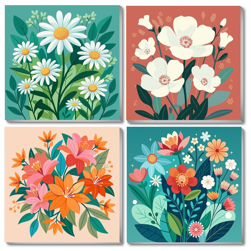 YarnWhimsy Framed Paint by Numbers for Kids - 4Pack Flowers Paint by Numbers for Kids Ages 4-8-12,Paint by Number Kits on Canvas,DIY Oil Painting Acrylic Kits for Home Decor(12x12inch)