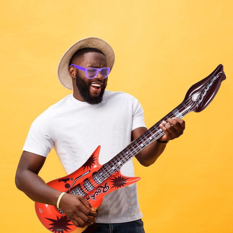 - ★【Inflatable Boom Box with Mobile Phones Microphones and Guitars】- The inflatable boom box is approx.42 x 28 cm/ 16.5 x 11 inches (LW), the mobile phone measures approx.15 x 15 x 72 cm/ 5.9 x 5.9 x 28.34 inches and the microphones measure approx.25 cm/ 9.8inches in length after inflated, easy to inflate and proper size to hold, you need to inflate it by yourself. Note: please keep it away from kids to avoid choking hazard.