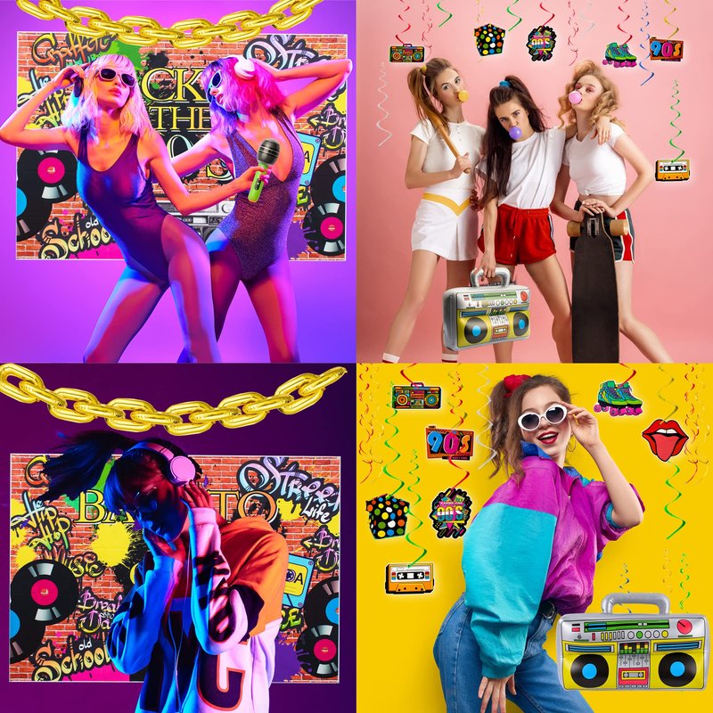 You can decorate with this 90s 80s theme party decorations at your home when holding dance nights, rock parties, weekend parties, summer parties, theme nights, disco parties and carnival parties. Whether you're attending a rapper hip hop dance theme party, Birthday.