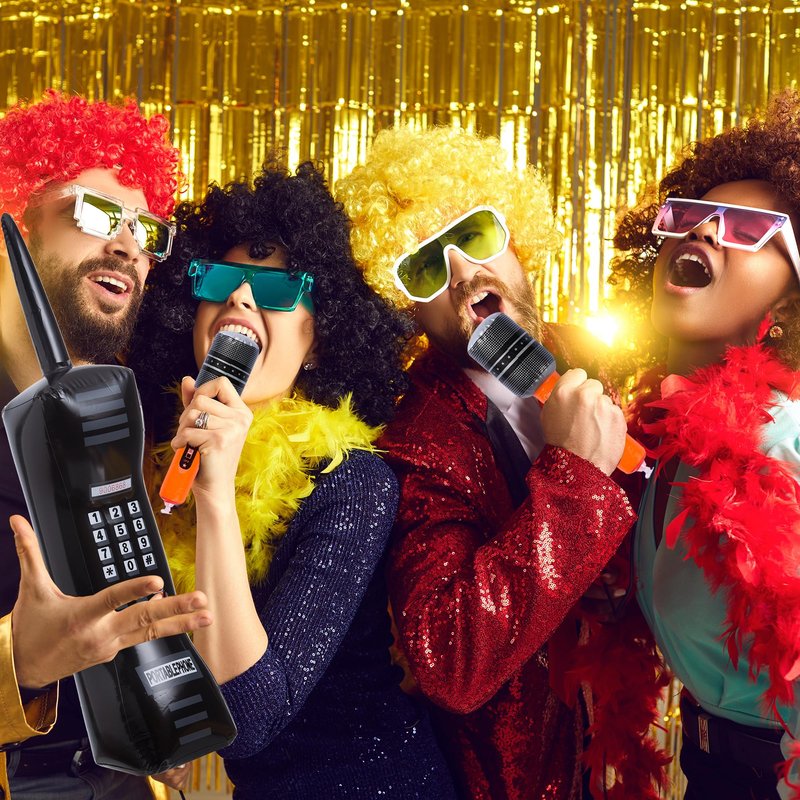 - ★【Complete 80s 90s Party Decorations Supplies】- Our 80s 90s party decorations includes 6 shutter shading glasses, 1 piece of inflatable mobile phone, 1 piece of inflatable radio boombox, 2 random color inflatable microphones, 20 pieces of gold link chain balloons, 2 inflatable random color guitars, 1 random color pump. Our classic retro fashion style is the great choice for your hip-hop 80s 90s party.