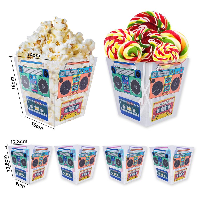 - ★【80s 90s Party Supplies】 - Our 6PCS plastic popcorn buckets were the focus of themed parties in the 1980s and 1990s. Put these radio cassette style popcorn buckets on the party table in the 1980s and 1990s! It is the core decoration for creating a 90s themed birthday party table for adults.