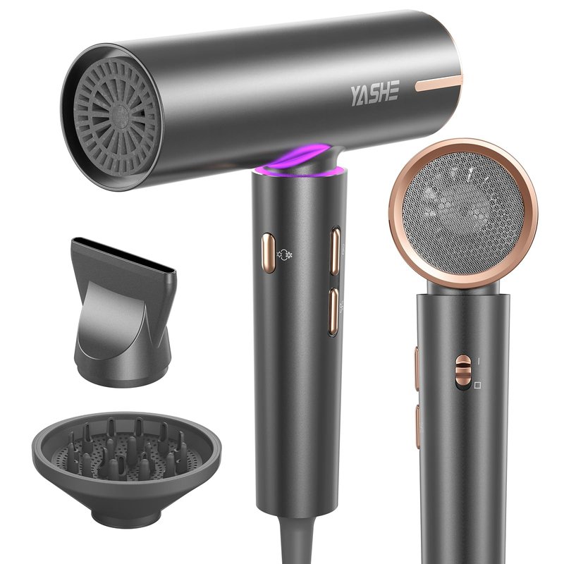 - Powerful High-Speed Drying: Featuring a robust 110,000 RPM brushless motor, the YASHE hair dryer delivers a strong airflow of up to 23 m/s, ensuring ultra-fast drying in just 1-6 minutes. Ideal for professionals and home users alike, this high speed hair dryer offers a compact design for enhanced comfort during use