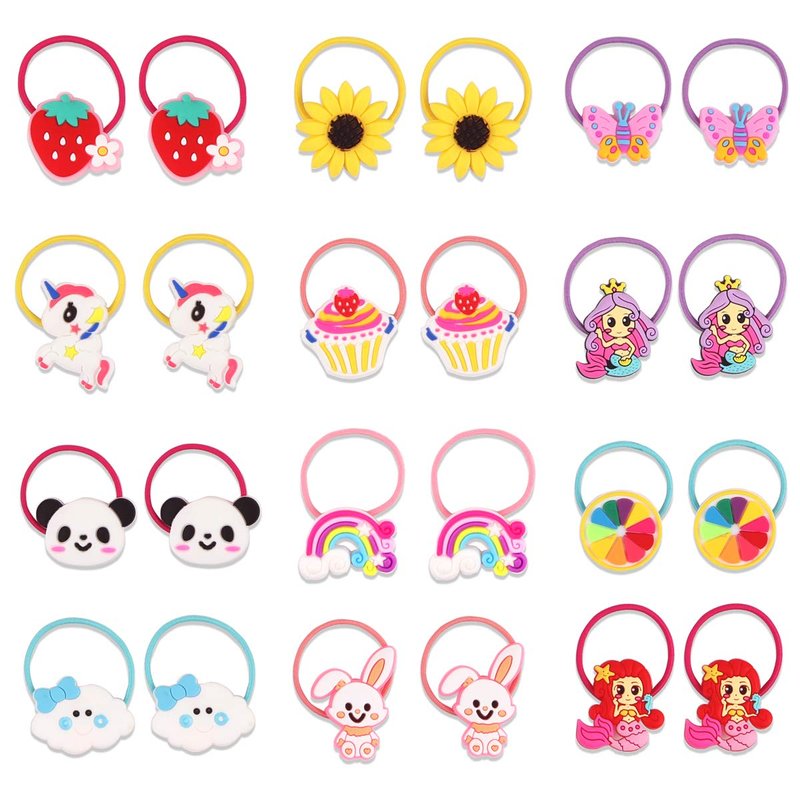 YASUNMI 24pcs (12 pairs) Girls Elastic Hair Ties, Baby Girls Cute Cartoon Hair Ties, Elastic Soft Rubber Bands Hair Bands Ponytail Holders Hair Accessories for Girls, Toddlers, Kids, Teens, Children