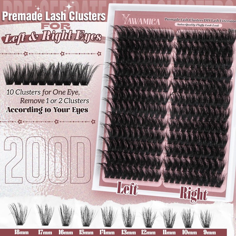 *Lash Specification: 9-18mm cluster lashes 200D volume